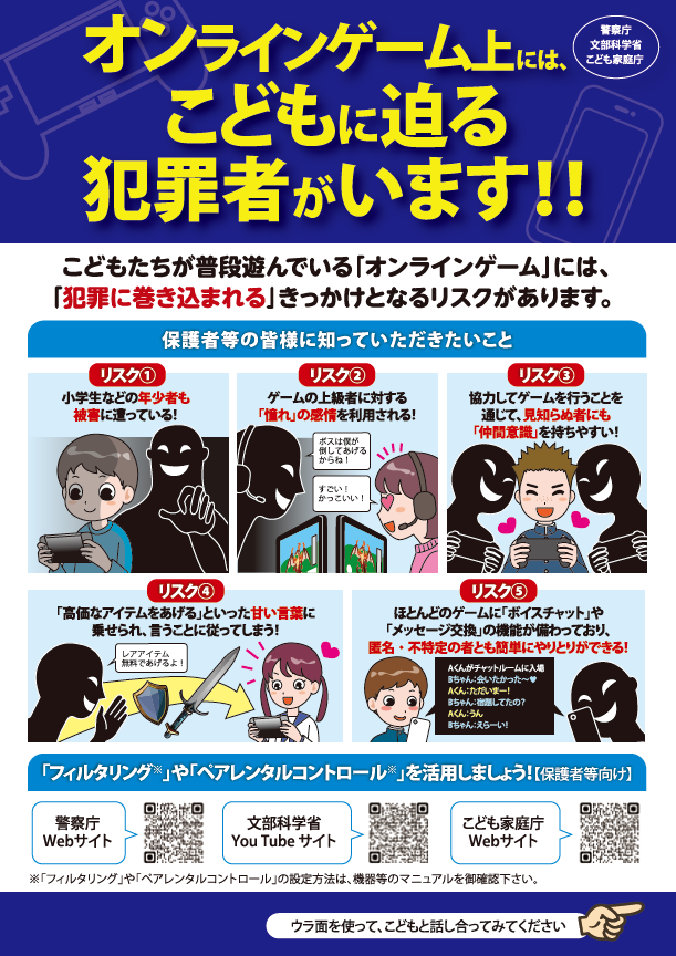 警察庁、文部科学省及びこども家庭庁が広報啓発資料を作成しましたので、被害防止のため、活用してください!